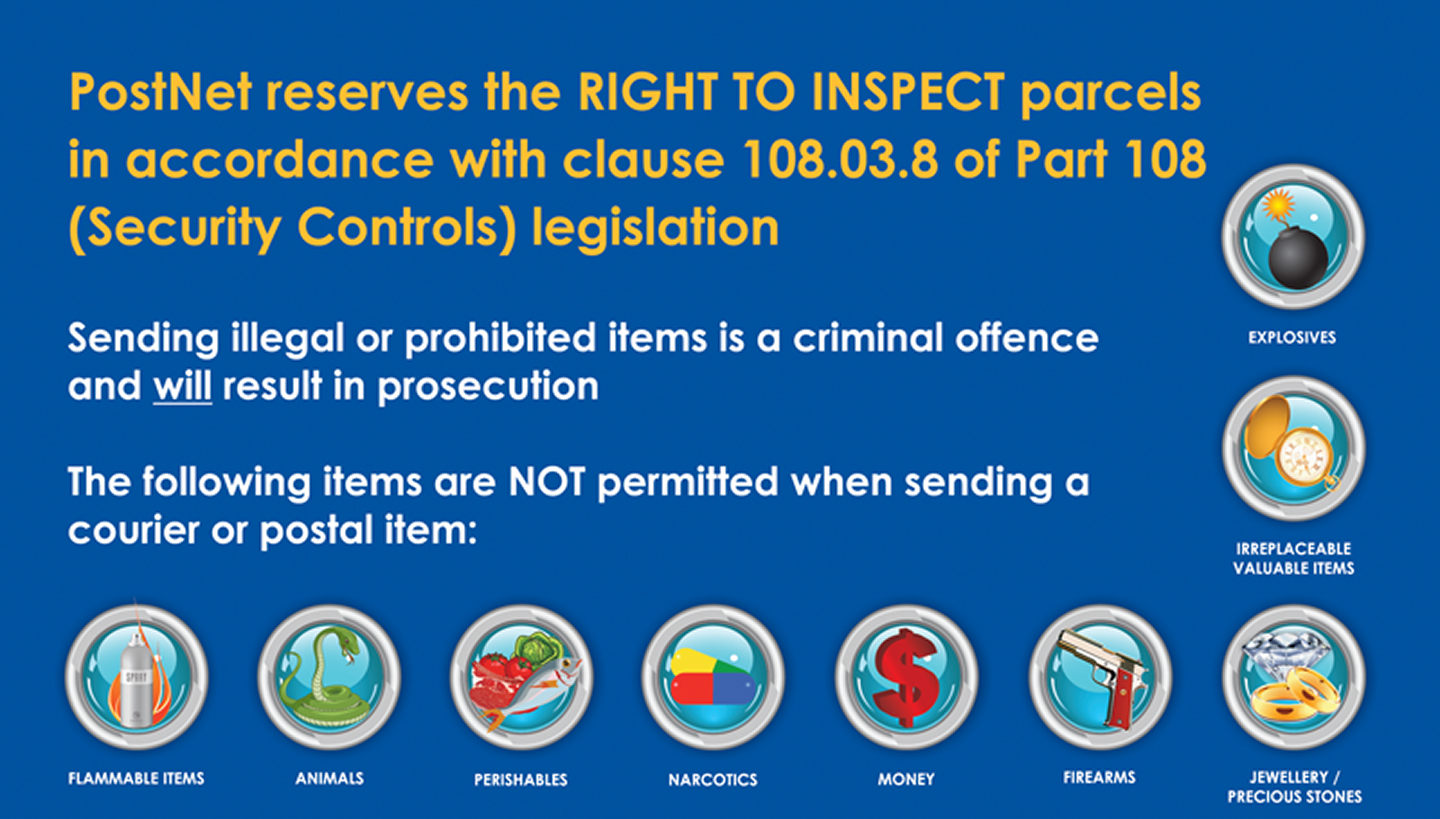 There are some obvious items that you cannot send with PostNet Global Express (animals, illegal substances, guns and explosives for instance).